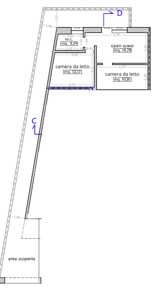 L’immobile di circa 45 mq è composto da: