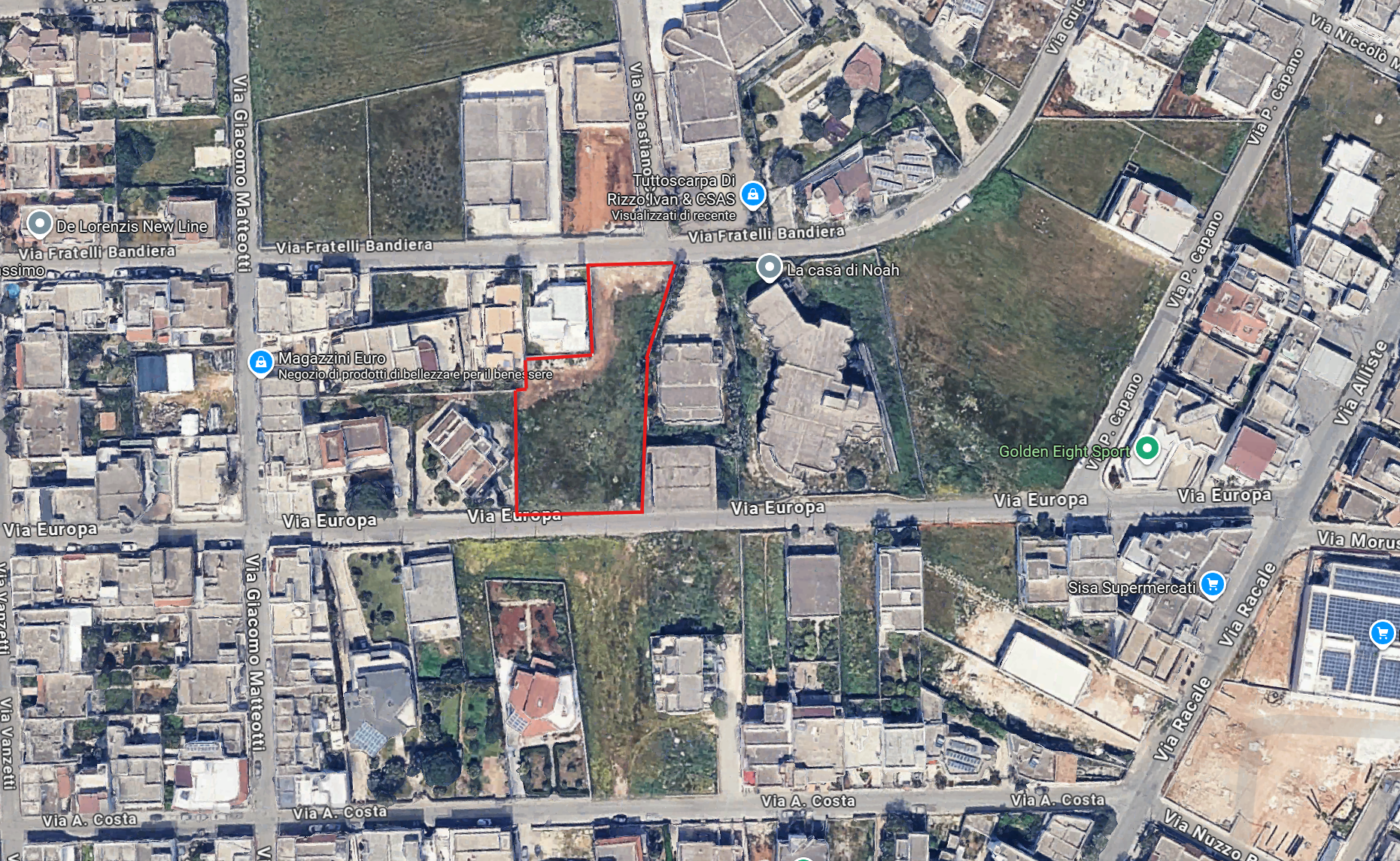 Si valuta la possibilità di vendita frazionata, poiché il terreno dispone di una doppia esposizione, una su via Europa ed una su via Fratelli Bandiera.
