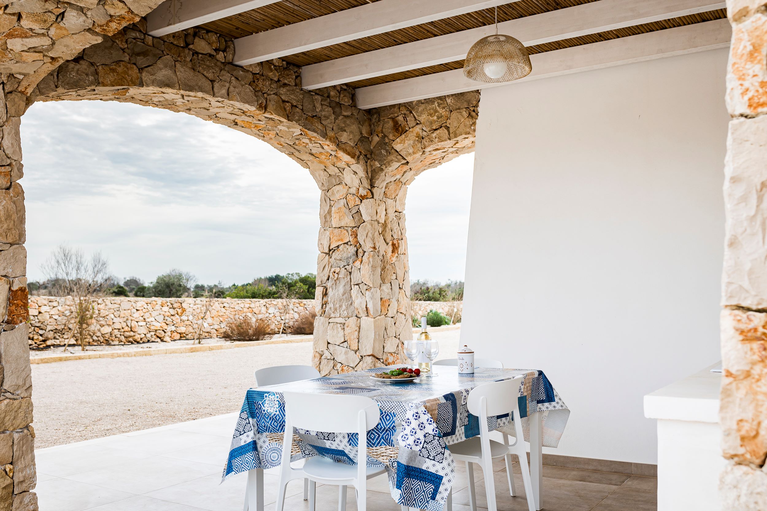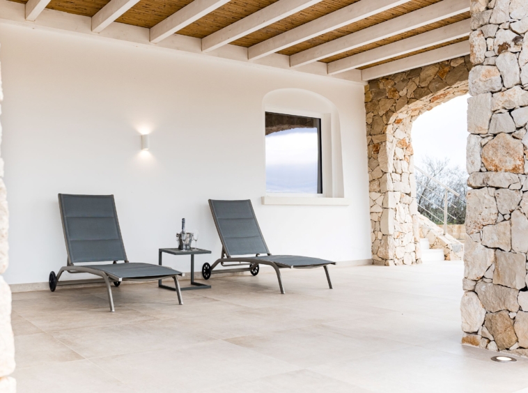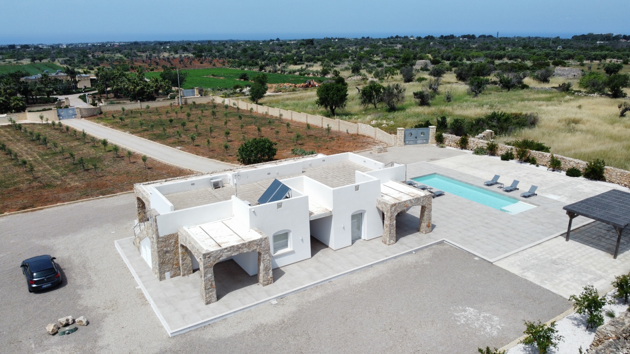 L’immobile, di circa 180 mq di copertura, si distingue per le finiture contemporanee e per la presenza di ampie superfici esterne coperte (porticato/veranda) impreziosite da archi e colonne in pietra a vista, ideali per vivere gli spazi esterni in ogni stagione.