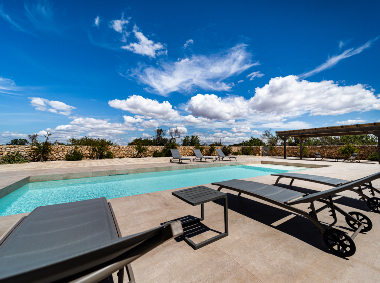 Completano la dotazione esterna una piscina (ideale per il periodo estivo e per aumentare l’appeal turistico dell’immobile) e ampie aree dedicate a relax, solarium e convivialità.